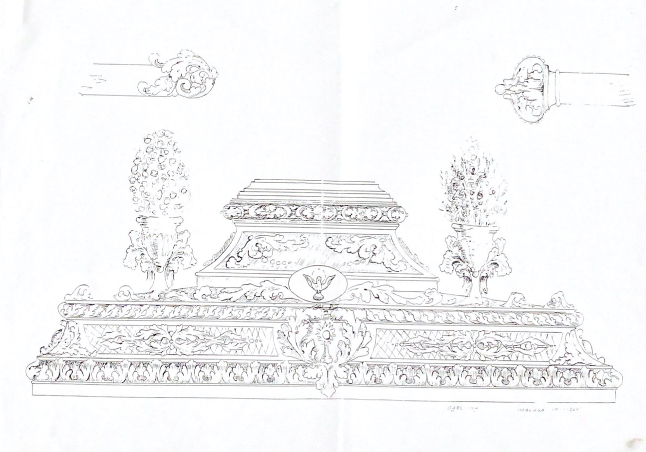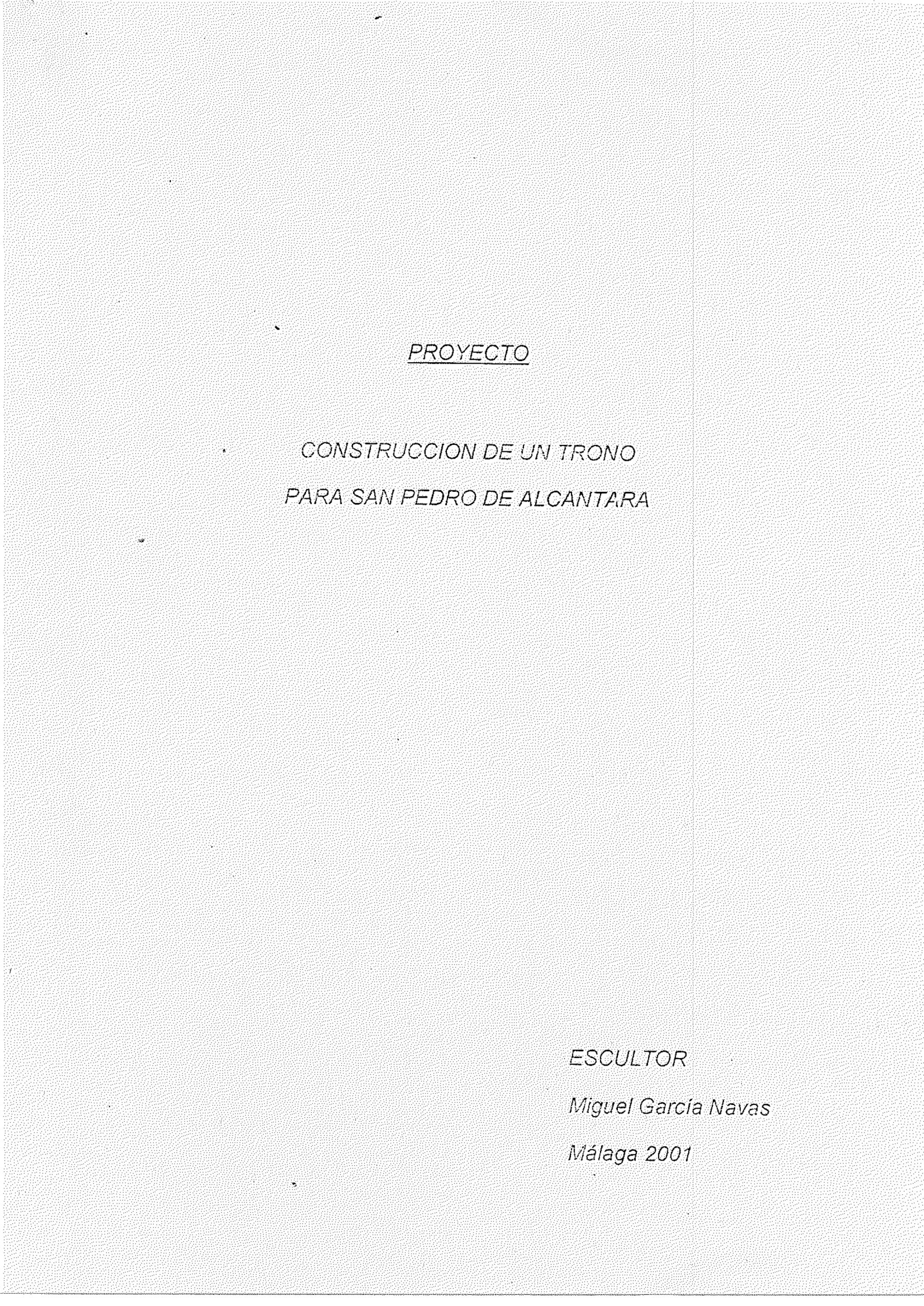 El encargo se le realizó al imaginero malagueño Miguel García Navas ( Málaga 1936-2013 ) el cual contaba con una refutadas trayectoria , no en vano fue durante muchos años el restaurador de la Catedral de Málaga, así como autor de numerosas obras para hermandades y cofradías malagueñas, entre otras , el trono del Cristo resucitado, la restauración del trono de Santo Sepulcro y autor del diseño de los esplendidos arbotantes del trono de la Virgen de la Paloma así como numerosas obras por toda la provincia.